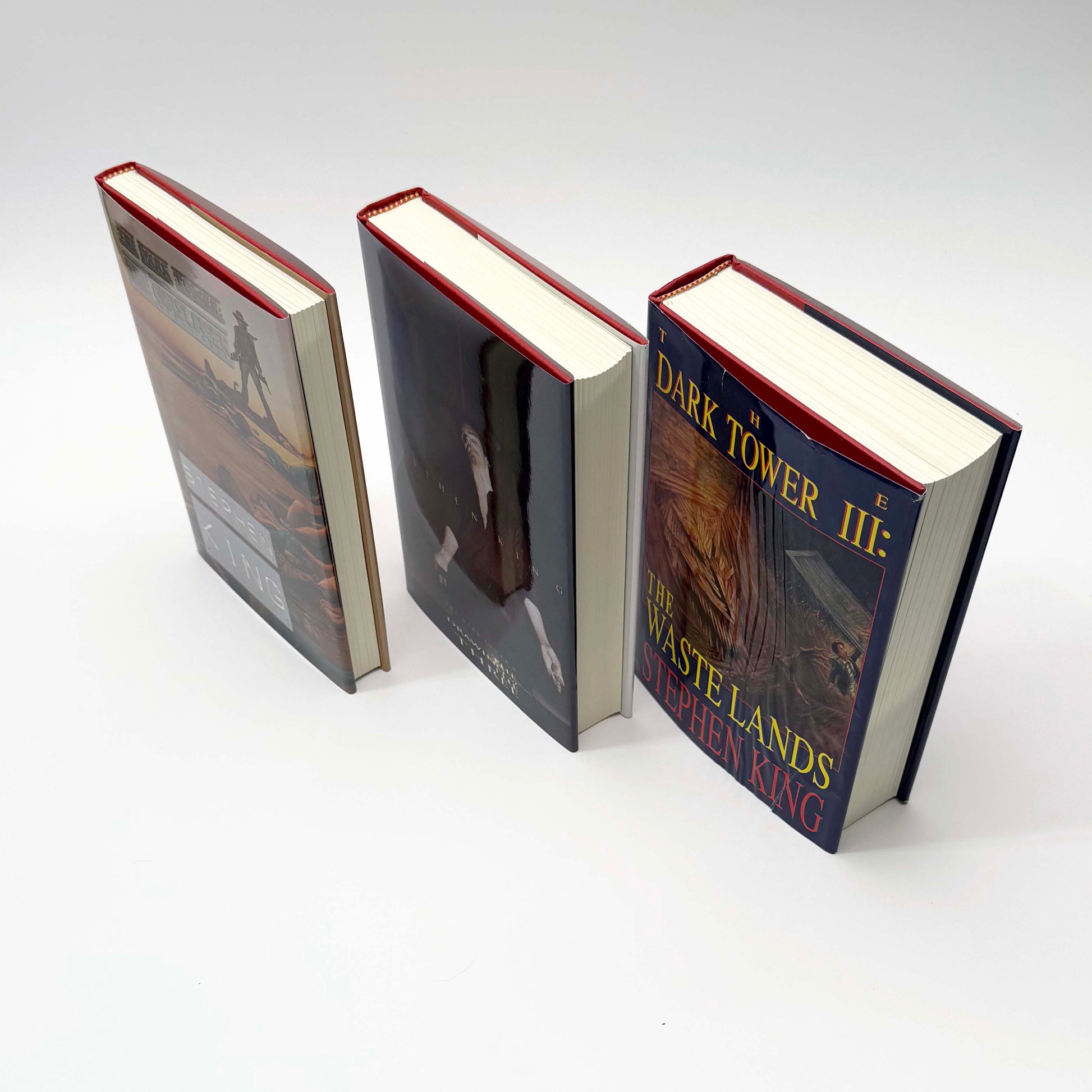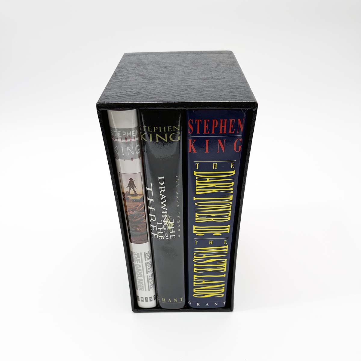 Dark Tower set from Donald M. Grant. DT-1 and DT-2 in Fine Condition. DT-3 has some wrinkling & small tears to the front of the DJ. Book block is Fine. Please see pics.