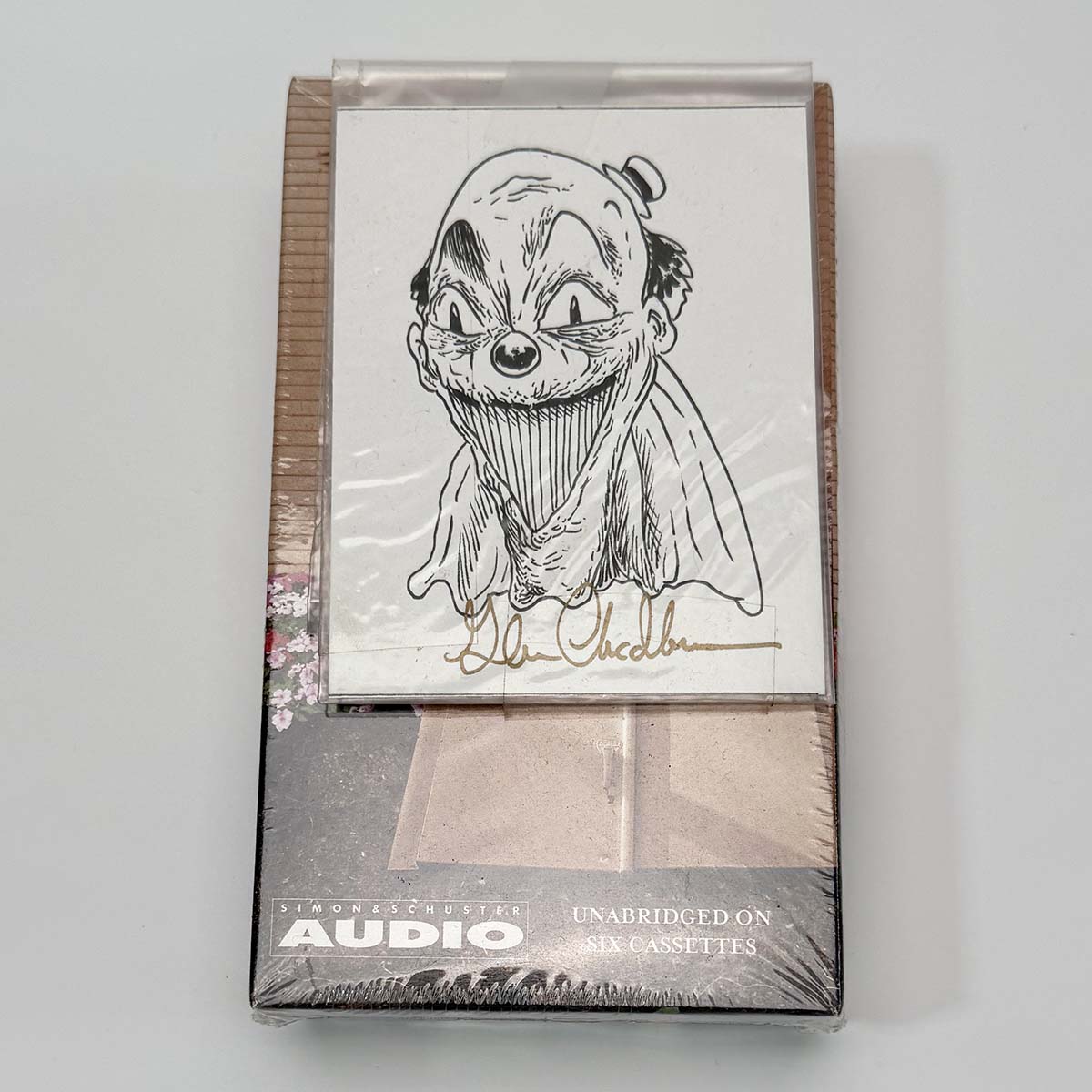 A still sealed in factory shrinkwrap set of audio cassettes for the book On Writing. Comes with a 3.5"x 4.5" original remarque by Glenn Chadbourne. The box has a cut on the back, likely from a box cutter.